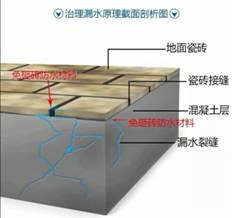 免砸砖防水是指不大面积砸开地砖重新做防水,而是选用一种多组分水溶性堵漏材料,渗透到漏点,发生膨胀固化反应,终凝后形成一种耐酸碱、耐腐蚀、耐高低温、高柔韧性的不透水结晶体,与建筑基层缝隙紧密交联形成良好粘结,从而达到堵漏治渗目的。